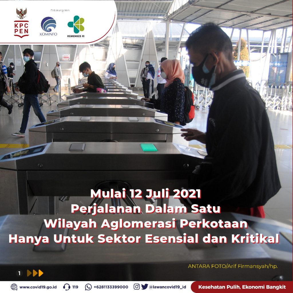 Mulai 12 Juli 2021 Perjalanan Dalam Satu Wilayah Aglomerasi Perkotaan Hanya Untuk Sektor Esensial dan Kritikal