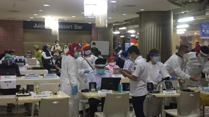 Para pedagang Pasar Tanah Abang Blok A diarahkan untuk mengikuti vaksinasi di lantai 8. Sementara itu pihak pengelola dan pegawai akan divaksin di lantai 12.