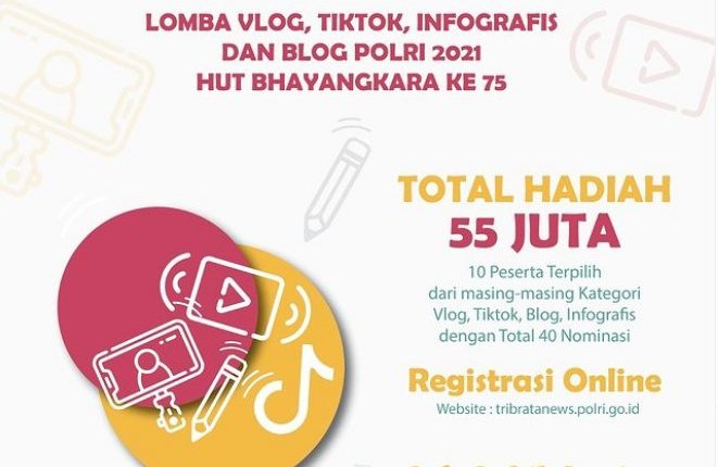 Satujuang.com – Menyambut HUT BHAYANGKARA POLRI KE-75 yang jatuh pada 1 Juli mendatang, Polri menggelar lomba Vlog, Tiktok, Infografis dan Blog.