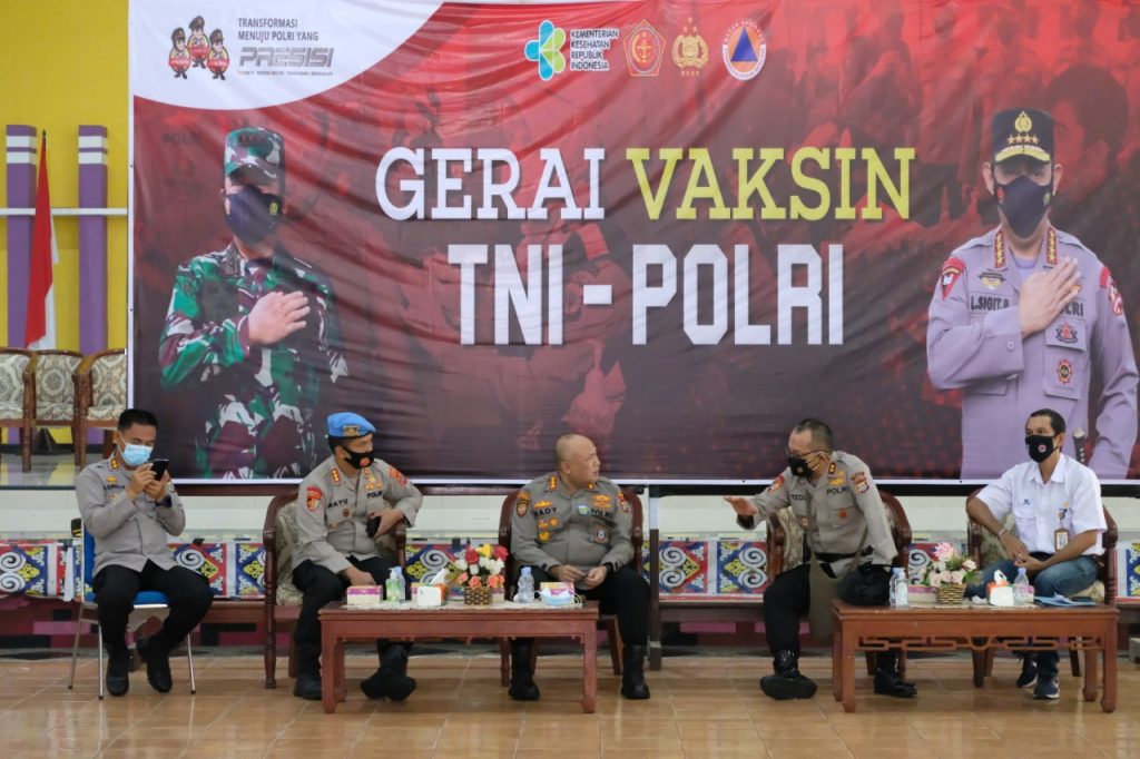 “Gerai Vaksinasi TNI-Polri ini digelar dalam rangka memberikan pelayanan Vaksin kepada Masyarakat dengan cara jemput bola, agar vaksin dimasyarakat tersalurkan secara merata,